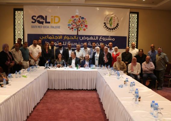 Within the framework of the SOLiD2 project to promote the path of inclusive and multilateral social dialogue in the countries of the South Mediterranean, a workshop was held on Monday October 3, 2022 at the Carmel Inn, Ramallah – Palestine with the presence of representatives of the General Federation of Palestinian Trade Unions, in addition to representatives of employers' organizations from The Palestinian Federation of Industries and the Federation of Palestinian Chambers of Commerce, Industry and Agriculture to address the most prominent challenges and priorities that must be discussed through joint action between all social parties.